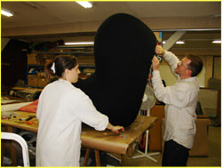 A la CRÉATION, recherche d'harmonies, choix cuirs, tissus,
